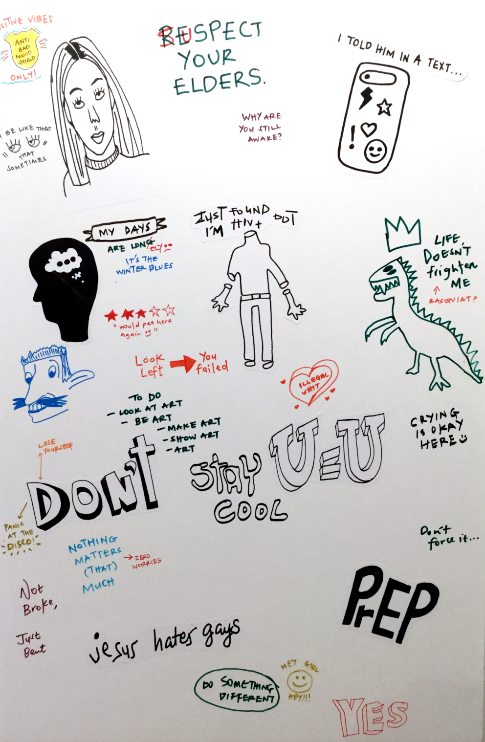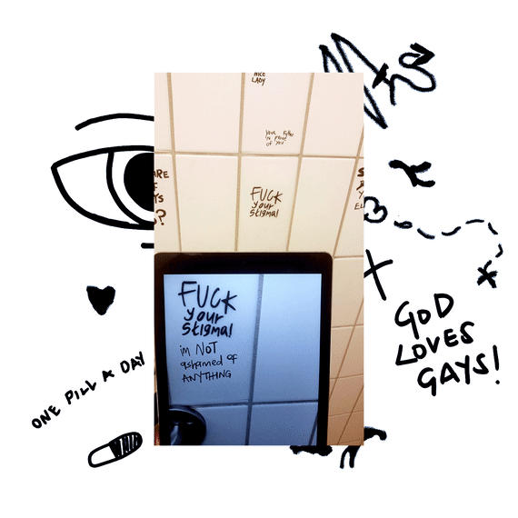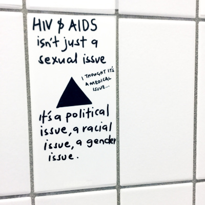 The project's latrinalia, toilet graffiti, were inspired by real conversations seen in online social media spaces such as comments and tweets. They reflect different attitudes about HIV ranging from hopeful, vulnerable to stigmatized and ignorant.
