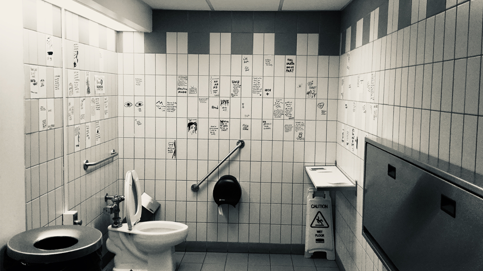 Almost 40 years into the AIDS crisis, talk of the disease seems to have fallen off the radar outside affected circles. The Big Disease explores two new forms of telling stories around HIV in a bid to spark discussion for a new audience. Inspired by the ways that marginalized people and groups have historically told their own stories, the work employs latrinalia i.e. toilet graffiti as an unconventional story format where the bathroom wall becomes a space for conversation.