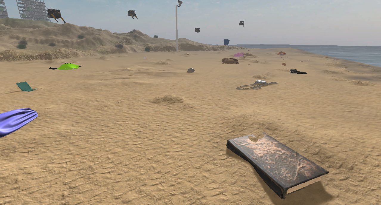 As the MIDO interacts with items strewn on the beach, the player is shown notes they have documented about the items they come across.