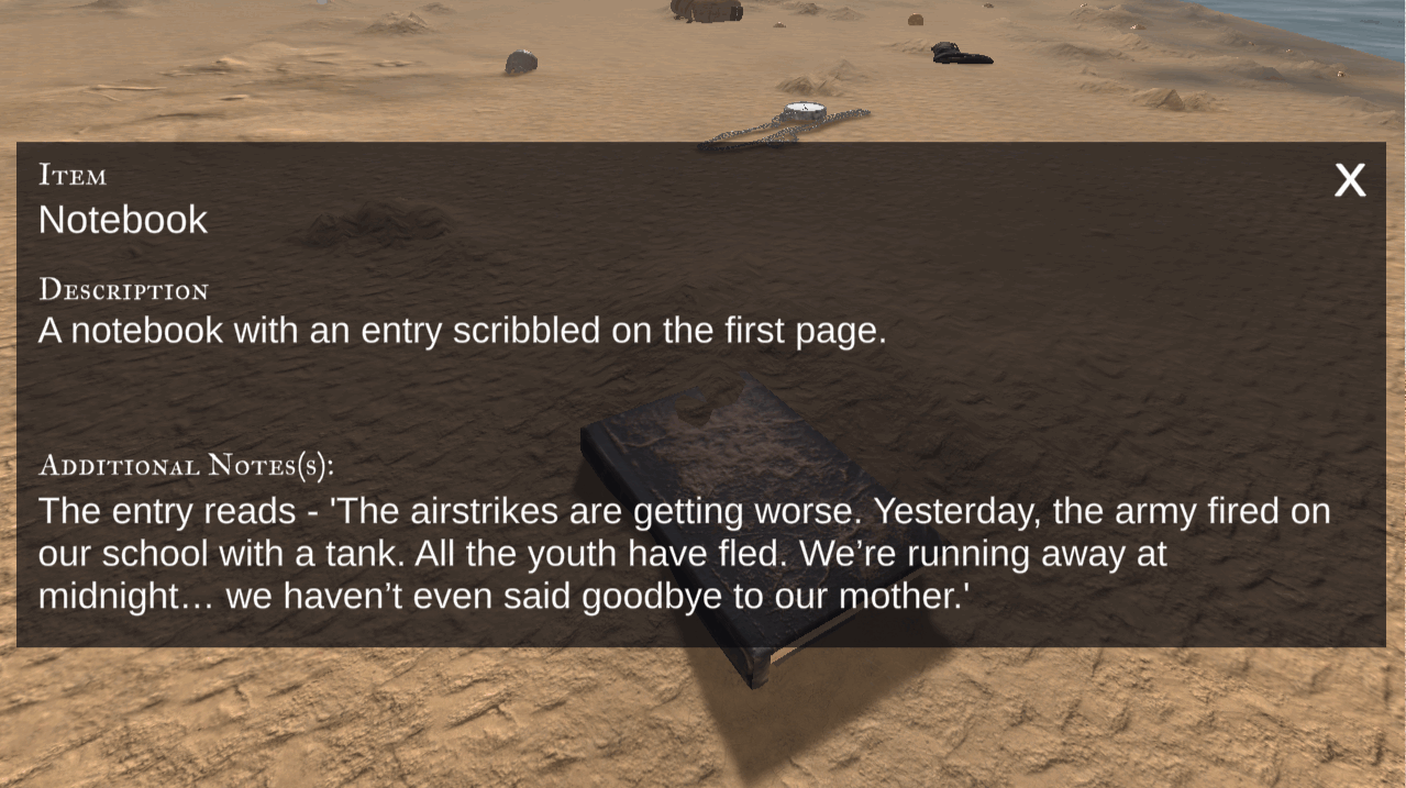 This speculative interactive experience was inspired by methods of data collection and presentation on the migrant crisis. The story begins after a migrant incident has occurred in the imagined future of a fictional surveillance nation state, The Republic of Sybertek. The Ministry of Border Security and Citizen Protection (BSCP) is attempting to curb the flow of irregular migration at their seaside borders. The scene invites the participant to take on the role of a state appointed Migrant Incident Documentation Officer (M.I.D.O) tasked with “recording” information about the migrant’s belongings that have washed up after a smuggler boat carrying people has capsized.