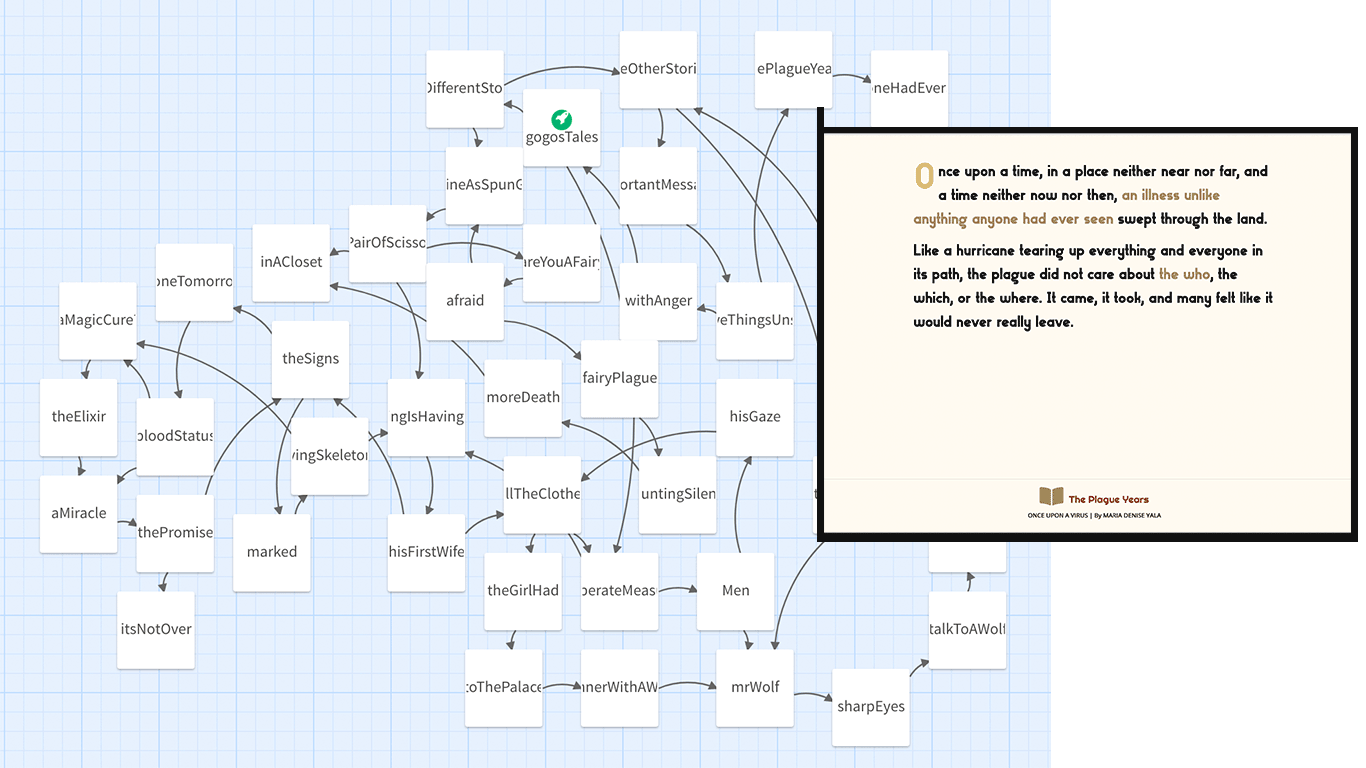 The interactive fiction was created using Twine, an open source tool for telling interactive non-linear stories.