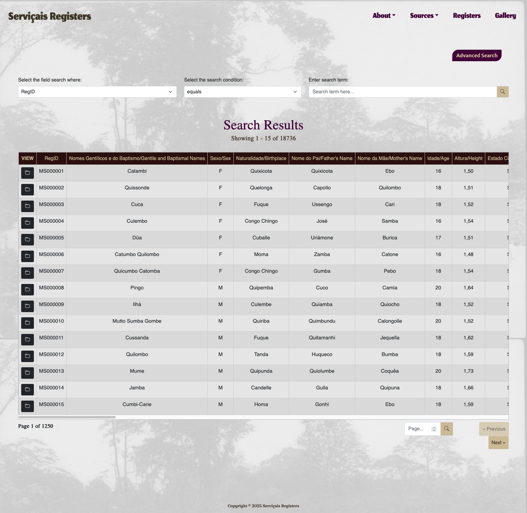 Serviçais Registers is a compilation of detailed records of over 18,000 indentured servants called serviçais who worked in Angola or were shipped from Angola.