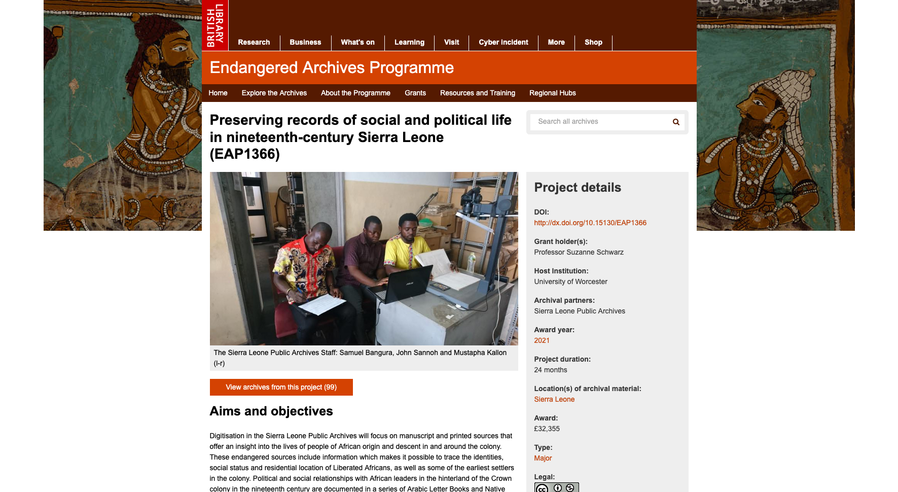 Working together with our Graphic Design intern, Thamires Andrade, I conceptualised the logo design which was inspired by the state of the 19th century documents in the Sierra Leone archives.