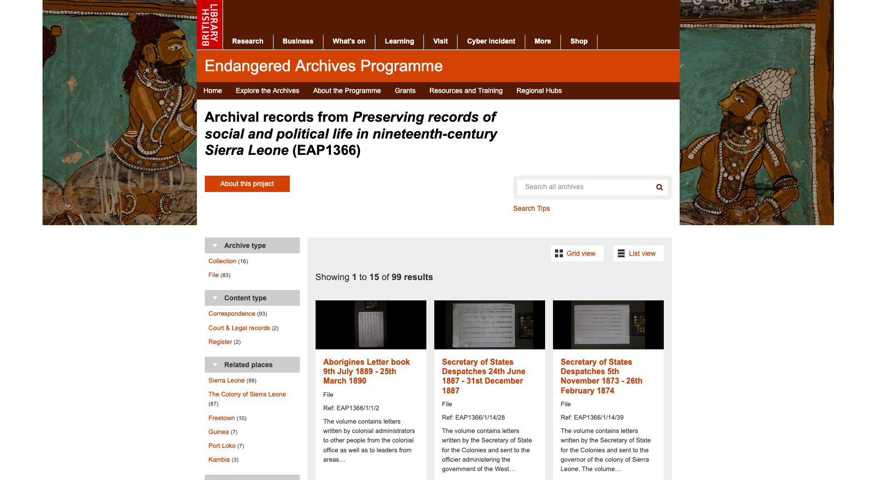 Sierra Leone Public Archives website is a digital archive of digitized records of the 19th century documents.